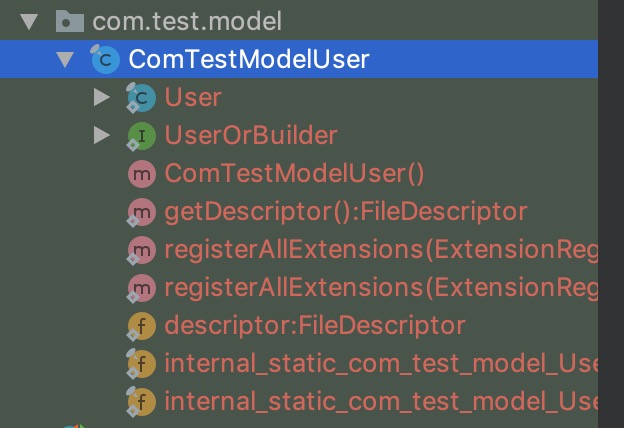 编写完了采用命令 protoc --java_out=. ./com-test-model-User.proto ,就会在当前路径下生成相应的代码结构。