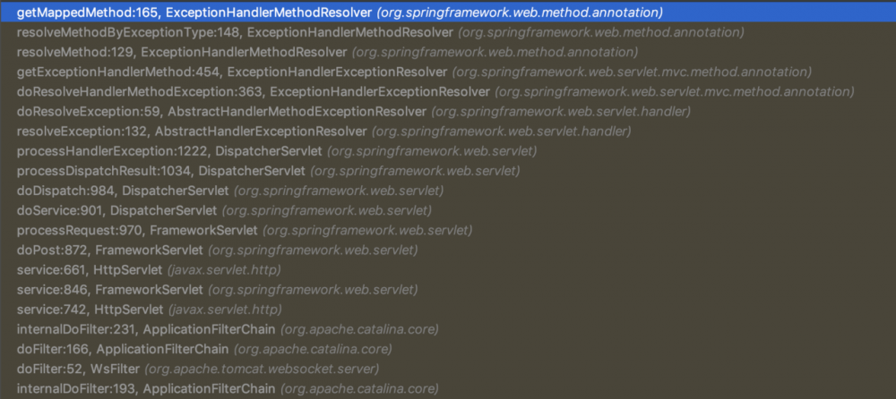 排出掉缓存的情况,主动触发一个IllegalArgumentException异常,经过一步步调试,发现调用栈如下: