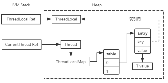 这里面涉及到三种对象的映射:Thread-ThreadLocal对象-ThreadLocal中存的具体内容,既然是每个线程都会有一个资源副本,那么这个从ThreadLocal对象到存储内容的映射自然就会存在 Thread 对象里:
