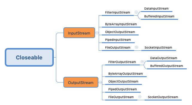 Java中的 InputStream 和 OutputStream 都是 io 包中面向字节操作的顶级抽象类,关于java同步 io 字节流的操作都是基于这两个的。