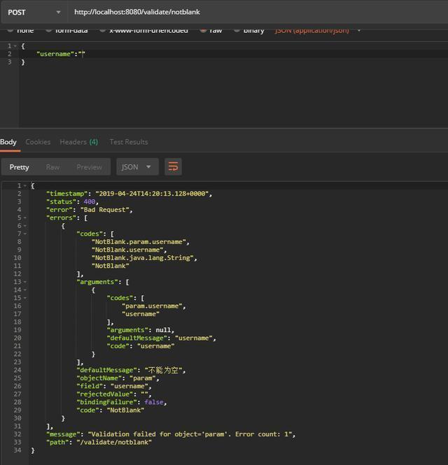 @NotBlank(message = "username不可为空") private String username; 复制代码