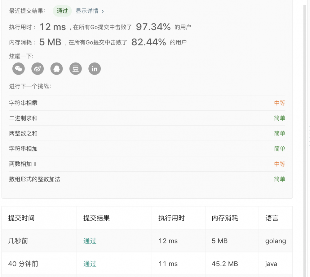 这道题Go的执行速度虽然超过了97%了Go的提交,但是居然比java慢!