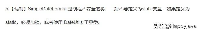 在阿里巴巴规约手册里,强制规定SimpleDateFormat是线程不安全的类,当定义为静态变量时,必须加锁处理。忽略线程安全问题,正是大多数Java初学者在进行时间转化时容易踩坑的点。