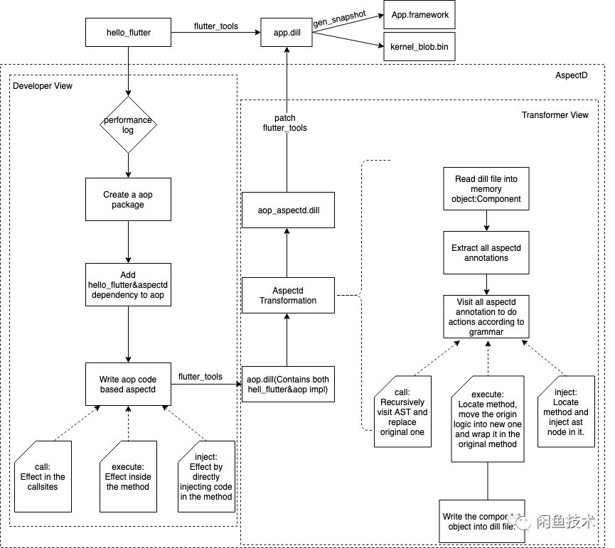 那么如何解决AOP for Flutter这个问题呢?本文将重点介绍一个闲鱼技术团队开发的针对Dart的AOP编程框架AspectD。