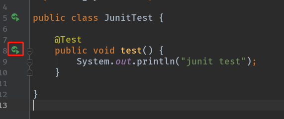 加了@Test注解,就会有一个运行的图标了。