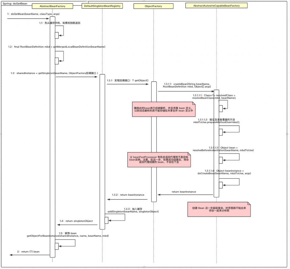 这个 bean 加载的代码量是有点多的,已经超过 100 行,所以整理了时序图,希望能对加载流程有个清晰的概览: