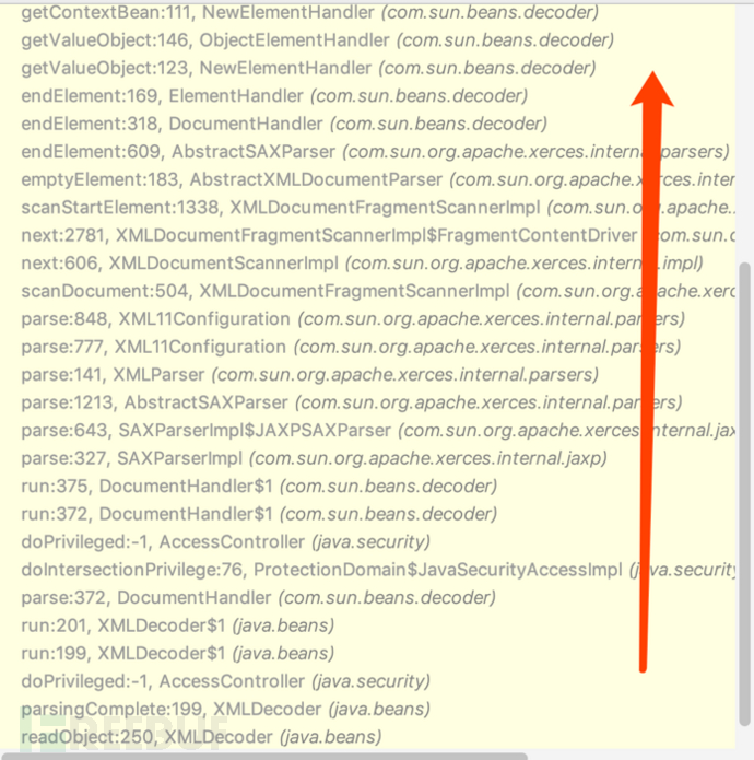 调用链我们只跟到 XMLDecoder.readObject(),因为剩下的都是上一节的内容了,