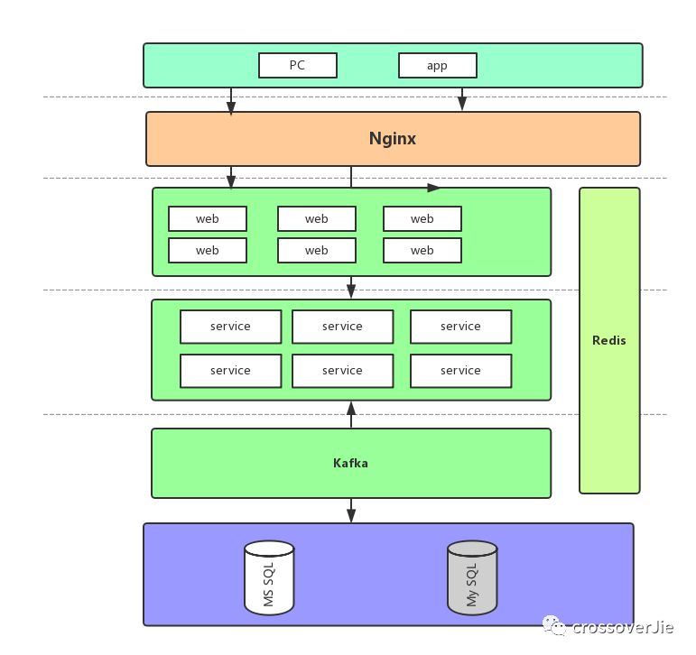 为了进一步提高秒杀时的吞吐量以及响应效率,这里的 web 和 Service 都进行了横向扩展。