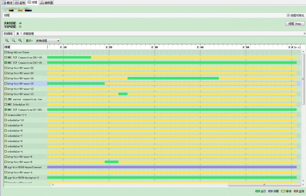 可以查看线程工作的饱和度,感觉像是老板在看员工的工时一样的爽。