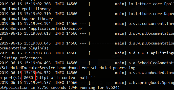 如果我们不指定环境,直接启动,则会启动在8080端口: