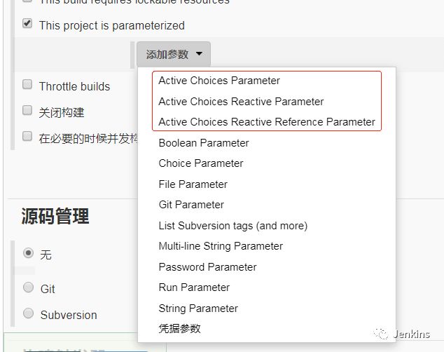 插件安装之后,可以在项目配置中的参数化配置中看到一些新增了的选项。