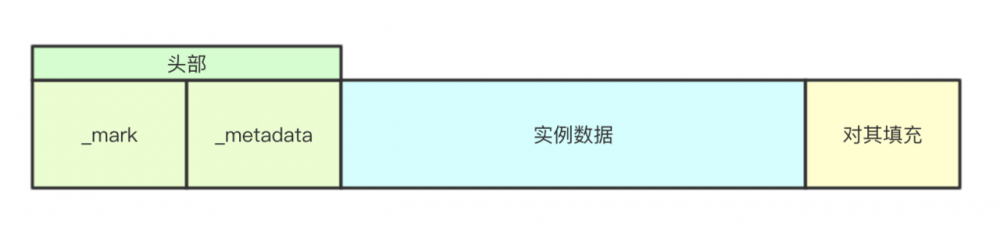 instanceOopDesc其实保存的是对象的头部信息,除了头部信息,对象还有数据,对象数据紧跟着头部后面,图示如下:
