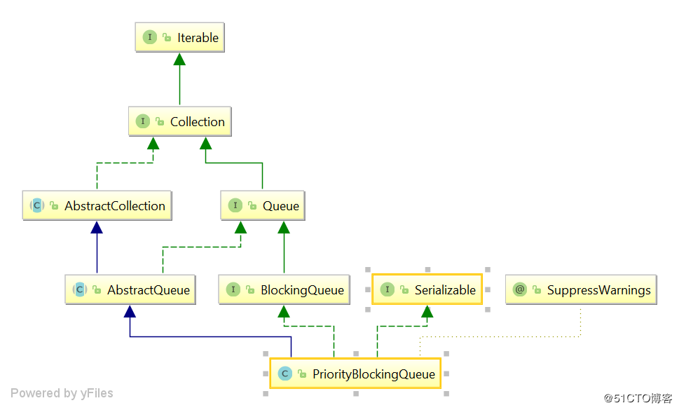 PriorityBlockingQueue 是一个wujie的队列,使用put方法不会阻塞,使用时一定要注意内存溢出的问题;整个队列的出队和入队都是通过最小堆来实现的,理解最小堆是这个队列的关键;这个一个优先级的队列,适合有优先级的场景。