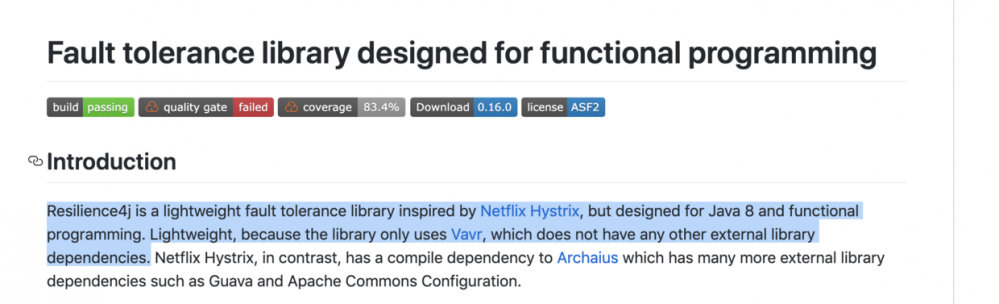 Hystrix是Netflix开源的限流、熔断降级组件,去年发现Hystrix已经不再更新了,而在github主页上将我引导到了另一个替代项目——resilience4j,这个项目是基于Java 8开发的,并且只使用了vavr库,也就是我们今天要介绍的主角。