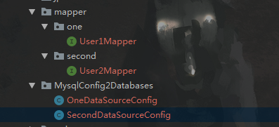 在配置文件中配置两个数据源配置,以及mybatis xml配置文件路径