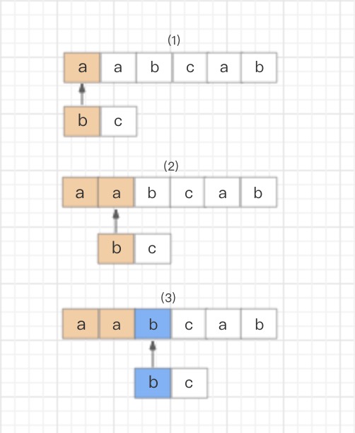 读取正则表达式第一个匹配符a和字符串第一个字符a进行比较,a对a,匹配