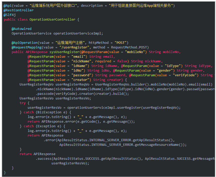 @Api(value = "运维端系统用户层外部接口", description = "用于组装直接面向运维App端相关服务")