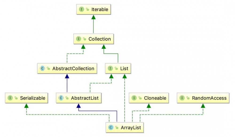 implements List<E>, RandomAccess, Cloneable, java.io.Serializable {}