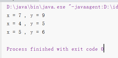 return "x = " + x + " , y = " + y;