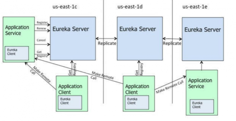 上图是来自eureka的官方架构图,这是基于集群配置的eureka