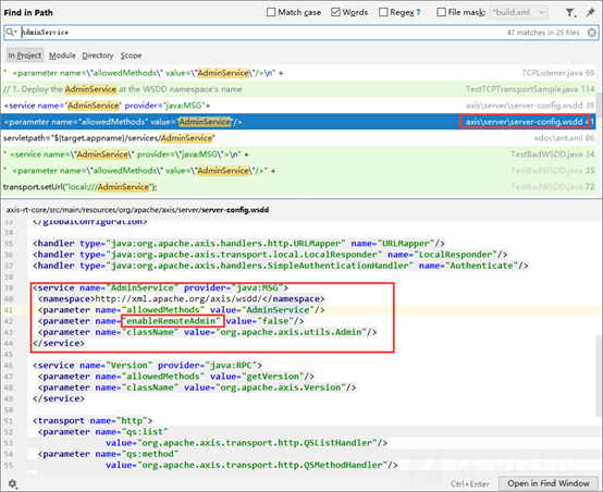 其实这个漏洞和 freemarker 没有啥必然联系,主要是因为 Axis 的未授权访问,可是默认配置下是不允许远程访问 AdminService 端口的,不过还是学习了 Axis 的处理方式,之前所了解到的 WebService 都是通过注解操作,但其实反过来想想,注解或是配置文件都一样,都需要框架底层自行实现解析流程