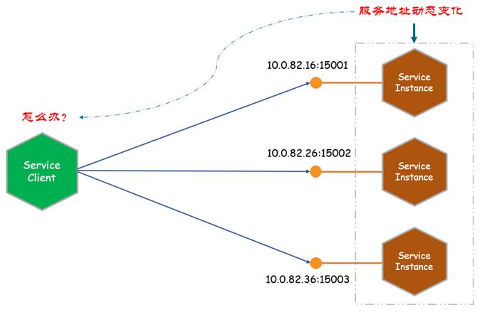 如上图所示,服务实例的地址动态变化,对于客户端而言,手工维护服务实例地址列表的方式已经不能满足需求,而使用服务发现模式动态更新维护服务实例地址列表是目前微服务架构下使用的必备技术。
