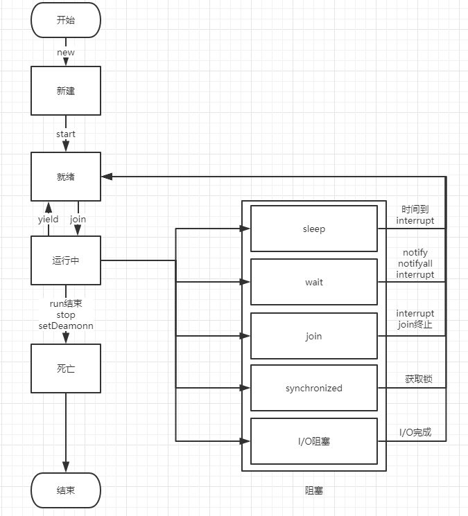 当用new创建一个线程后,线程就处于新建状态,此时和其他普通java对象一样,由JVM创建内存空间,初始化成员变量值等。