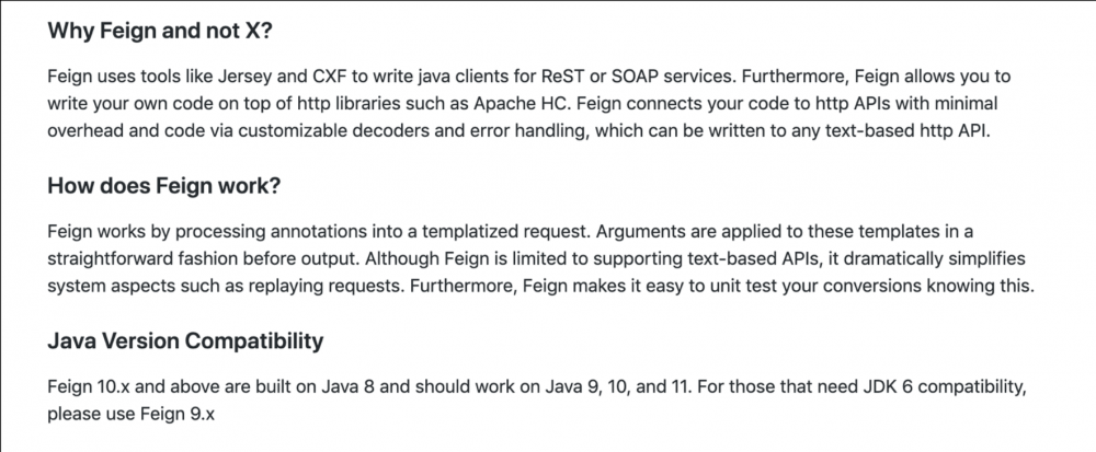 springcloud使用服务发现进行服务间调用。对外使用网关gateway屏蔽分流转发接口。服务发现客户端到注册中心拉取服务列表实现客户端负载均衡。客户端实现负载均衡主要有两种方式。一种是ribbon另一种是基于ribbon封装的feign。这是feign官方的解释