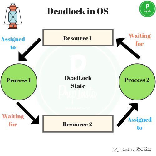 在操作系统中的并发处理场景中, 进程对资源的持有与请求过程中,会产生死锁. Say, Process A has resource R1 , Process B has resource R2. If Process A request resource R2 and Process B requests resource R1, at the same time , then deadlock occurs.