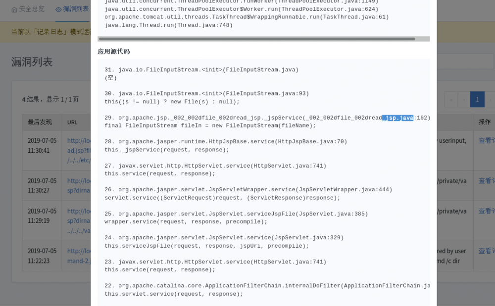 此处以openRASP为例,因为无法有效的定位到jsp文件所在内容,所以会给开发人员寻找具体代码造成麻烦。