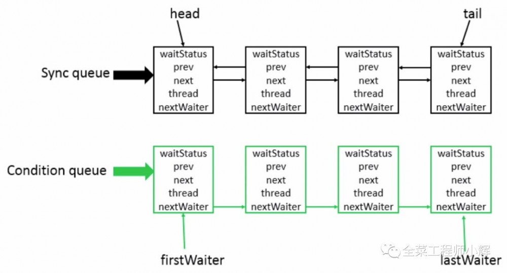 上面的流程,如果落实到代码,把 state置为0的那个线程,会判断head指向节点的状态,如果为通知状态,则唤醒后续节点,即线程3节点,然后head指向线程3节点,head指向的旧节点会被删除掉。当线程3恢复执行后,发现自身为通知状态,又会把head指向线程4节点,然后删除自身节点,并唤醒线程4。