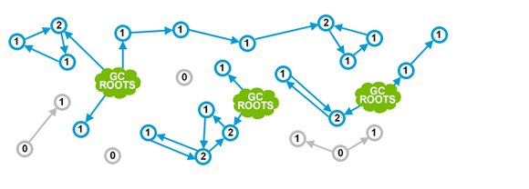 有一些方法可以克服这个问题,比如使用特殊的“弱”引用或应用一个单独的算法来收集循环。前面提到的语言——Perl、Python和PHP——都以这样或那样的方式处理循环,但这超出了本手册的范围。相反,我们将开始更详细地研究JVM采用的方法。