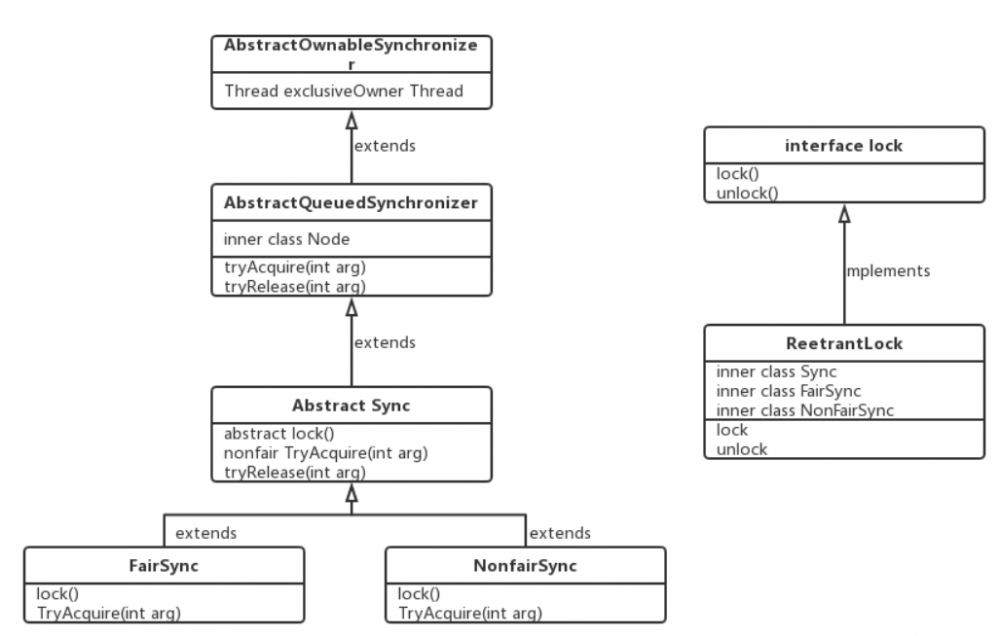 ReentrantLock内部实现了3个类,分别是: