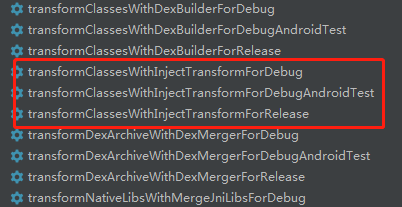 示例中给 Transform 取名:InjectTransform ,编译运行后,可以在 Android Studio 中查到生成的 Task 。