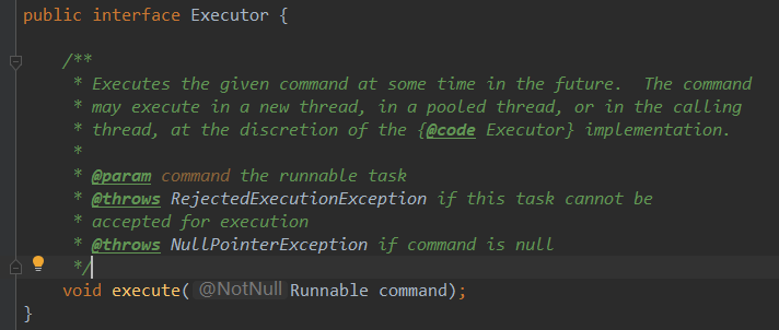 它是线程池顶级接口。它定义了一个方法 void execute(Runnable) 。