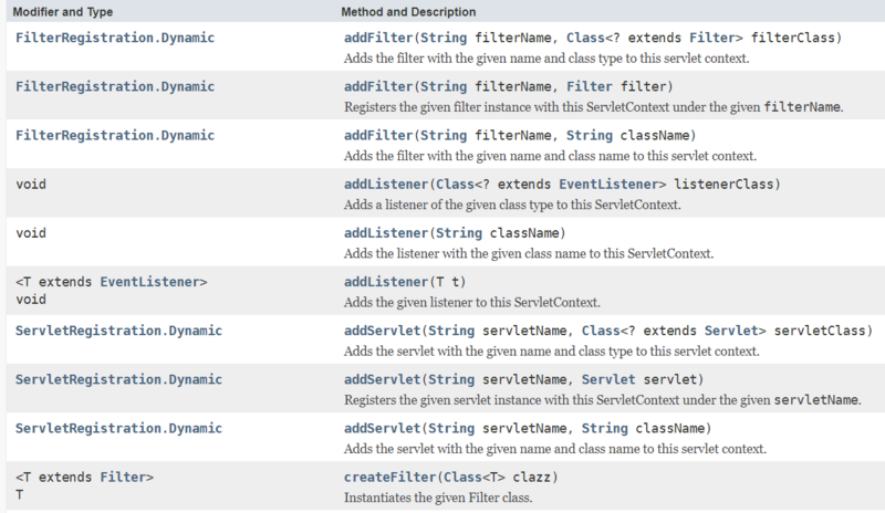ServletRegistration.Dynamic registration = servletCxt.addServlet("app", servlet);