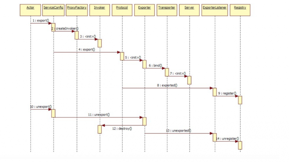 这是Dubbo官网的服务提供者的时序图 复制代码