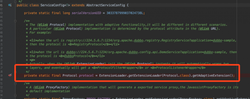 下面就贴下Protocol生成的扩展类Protocol@Adaptive的源码. 可以看到接口上带有 @Adaptive注解的,都是可以通过URL里面的参数设置的不同,动态实现对不同的扩展类 调用,这也许是JDK的SPI的只能对接口的扩展最大改进,Dubbo的SPI可以实现对方法的扩展.