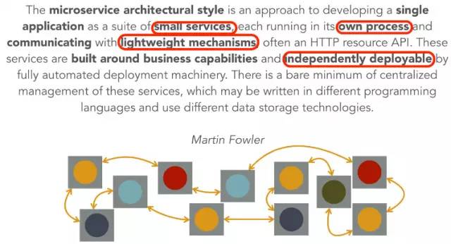 2015年,微服务架构这个词,以相当高的频率出现在各种演讲、文章、会议、社区上。这里,我先和大家快速回顾一下,Martin Fowler对微服务的抽象。