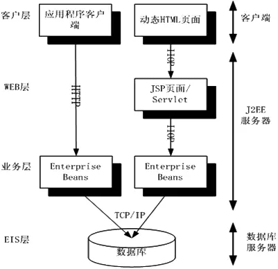 业务层和Web层共同组成了三层J2EE应用的中间层,其他两层是客户端层和存储层或企业信息系统层。