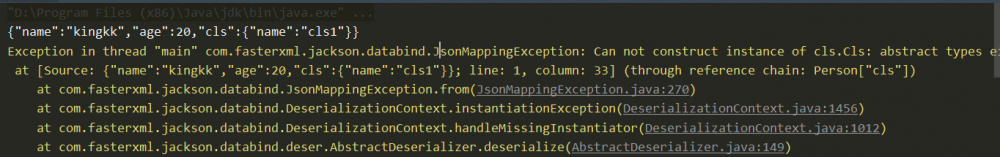 大意就是说由于 Cls 这个变量是一个抽象类,所以反序列化失败。因为jackson也不知道要反序列化它的哪一个实现。