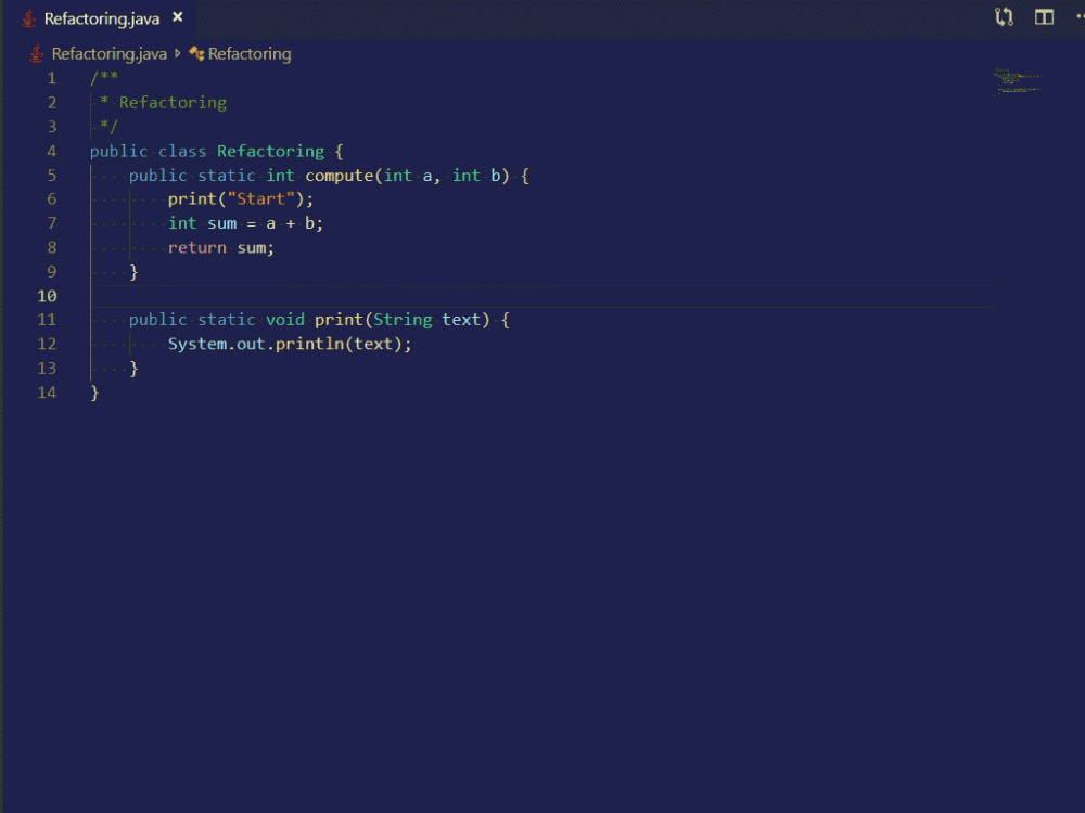 在 extract to variable/constant/method 重构之后,通常情况下,希望使用有意义的名称分配结果。使用此功能,将不再需要执行单独的重命名操作,所有操作都是在单个重构步骤中以流线型方式处理。