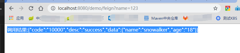 调用结果:{"code":"10000","desc":"success","data":{"name":"snowalker","age":"18"}}