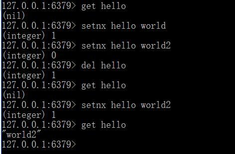 当key已经存在,再去设置值会返回0,表示设置失败,只有当key不存在的时候,才能设置成功并返回1。