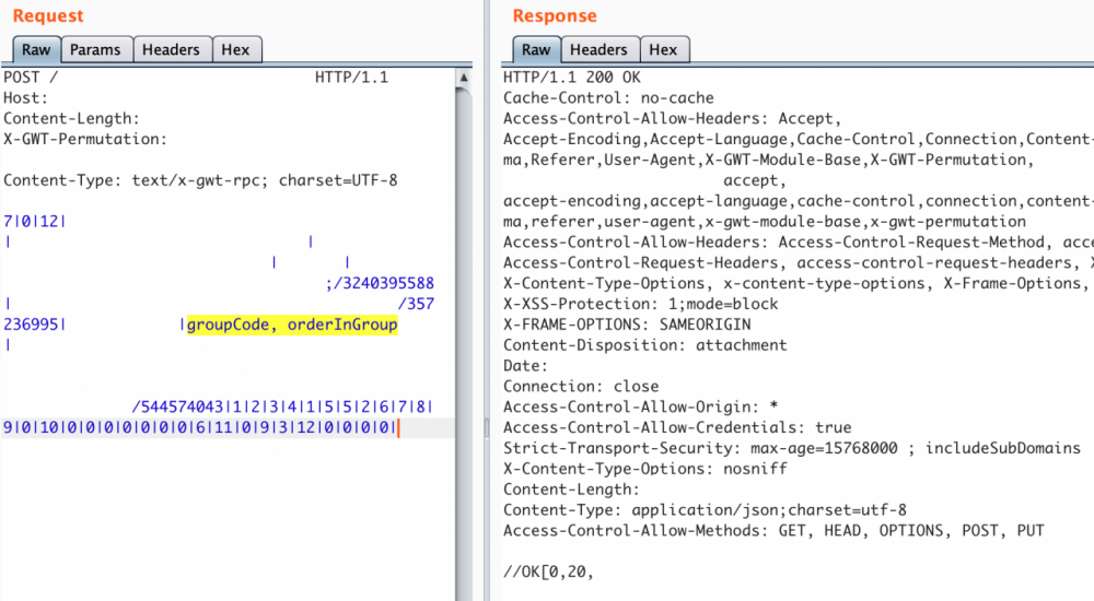 最初的请求/响应信息(注意POST body中的GWT格式)