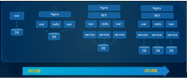 在金融行业中数据安全性,数据一致性、响应时间短、数据量大,业务逻辑复杂,在内部经过多轮讨论,最后技术选型微服务RPC框架选择了Dubbo 2.6.3版本,从2015年到2019年,整体服务的系统架构的演变过程如下: