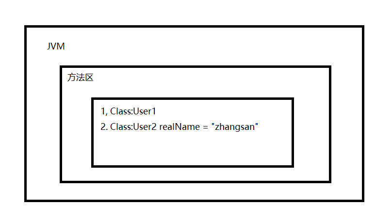 这两个类被加载到JVM,就会存放在这个方法区里面(类的所有类变量都会被赋值)。如下图