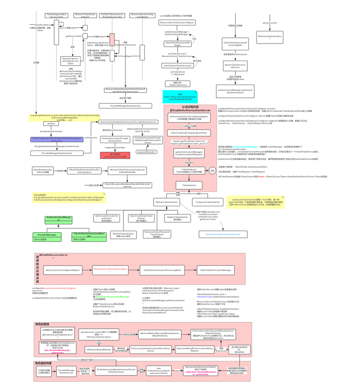 最近看过一个非常复杂Spring Security OAuth2技术架构图,虽然很多功能点我自己也没有用到过,但是这里还是附上吧。