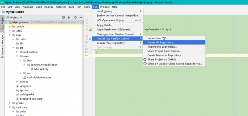 1.创建一个工程,创建git仓库