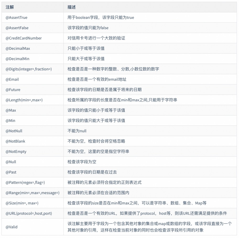 在开发JAVA服务器端代码时,我们会遇到对外部传来的参数合法性进行验证,而hibernate-validator提供了一些常用的参数校验注解,我们可以拿来使用。